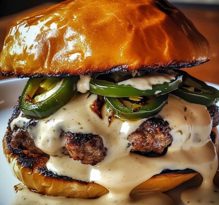 Double Meat. Two beef patties stacked with melted cheese and fresh jalapeños on a toasted bun. Bold, spicy, and built to be filling.