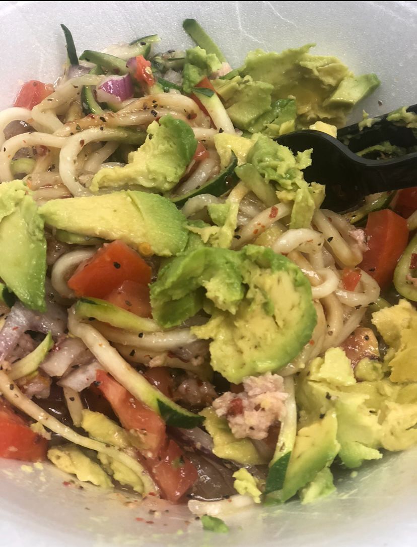 Zucchini salad with vegetables drizzled with red wine vinaigrette